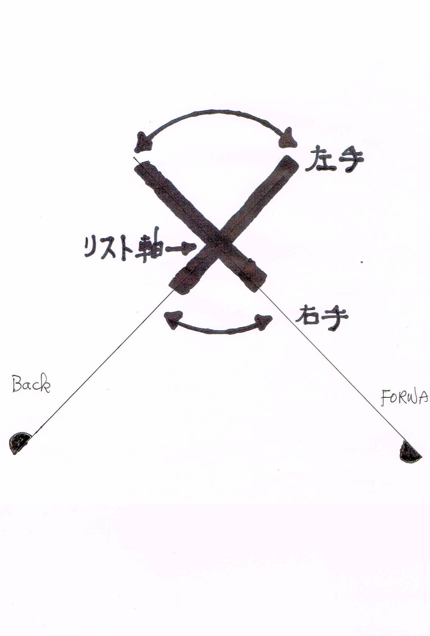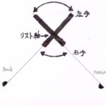 リスト軸を挟んで、両手は、反対方向に動きます。