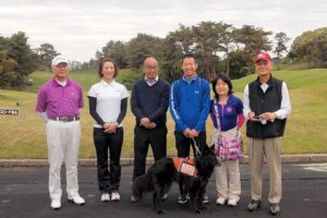 左より小野賢司(弟)、加藤プロ、戸苅総支配人、袖山夫妻と聴導犬ミーナ、本人