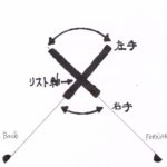 リスト軸の下にある右・手の平は、リスト軸の周りを旋回するように、フェ-スと同じ向きに動きます。